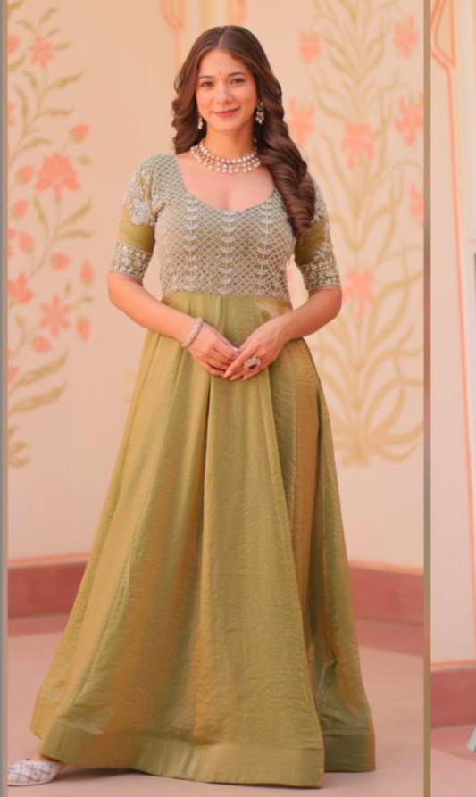 Price dropMatrut | Aliya Crush Lime Green Gown