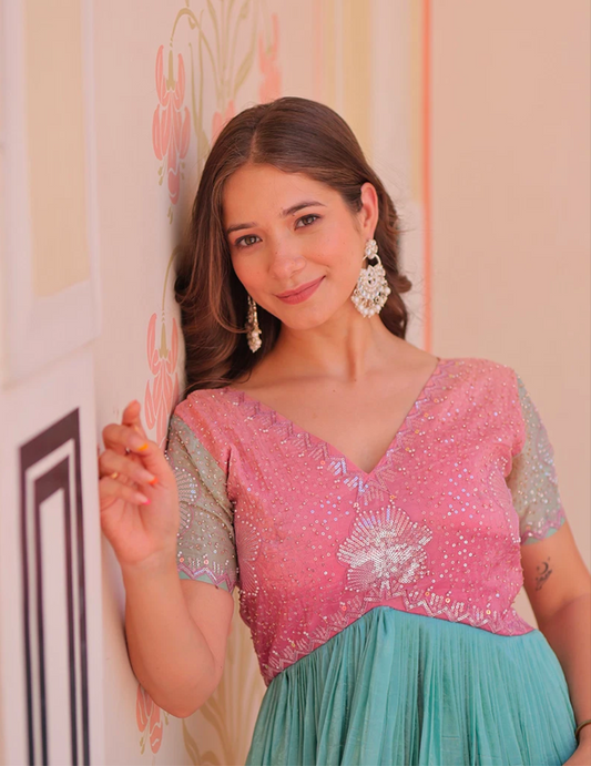 Price dropMatrut | Blush & Bold Blue Multicolor Gown