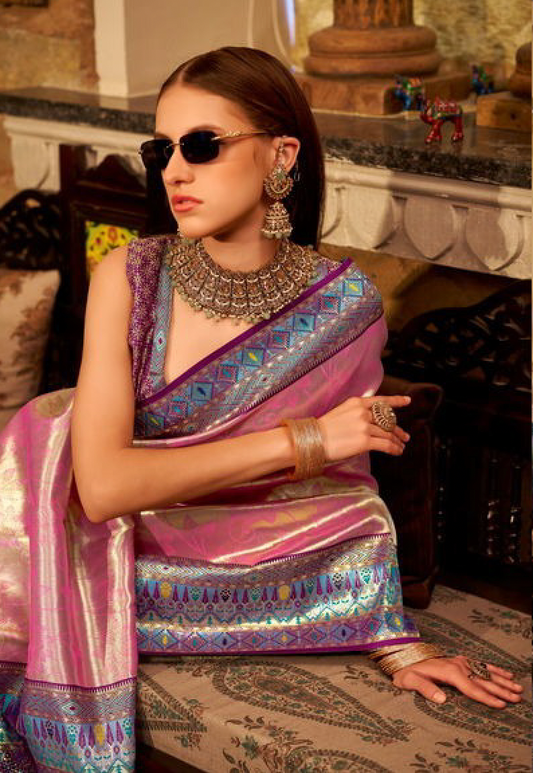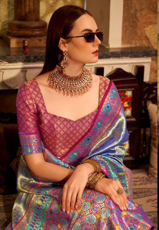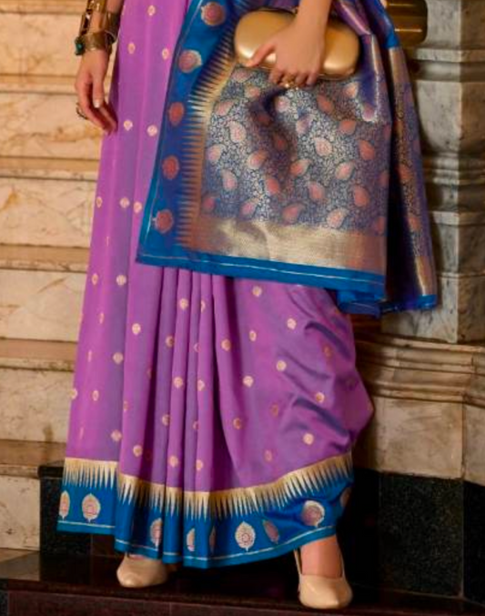 Price dropMatrut | Velvi Banarsi Purple & Blue Saree