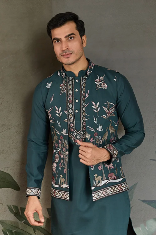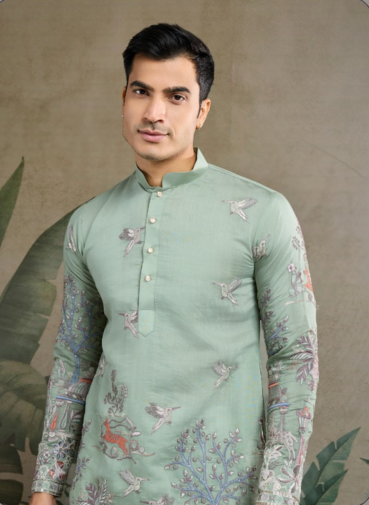 Price dropMatrut | Rajwada-2 Peacock Green Kurta Set