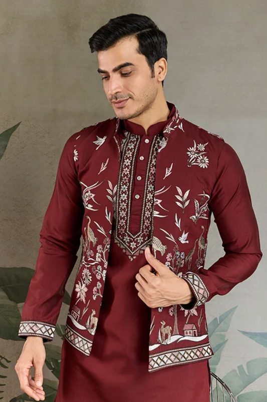 Price dropMatrut | Rajwada-2 Maroon Kurta Set