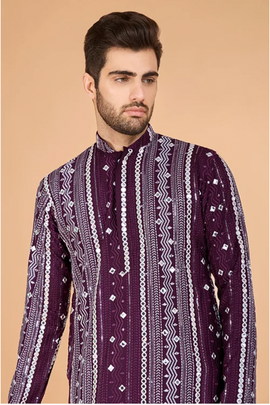 Price dropMatrut | Rajwada-2 Rust Purple Kurta Set