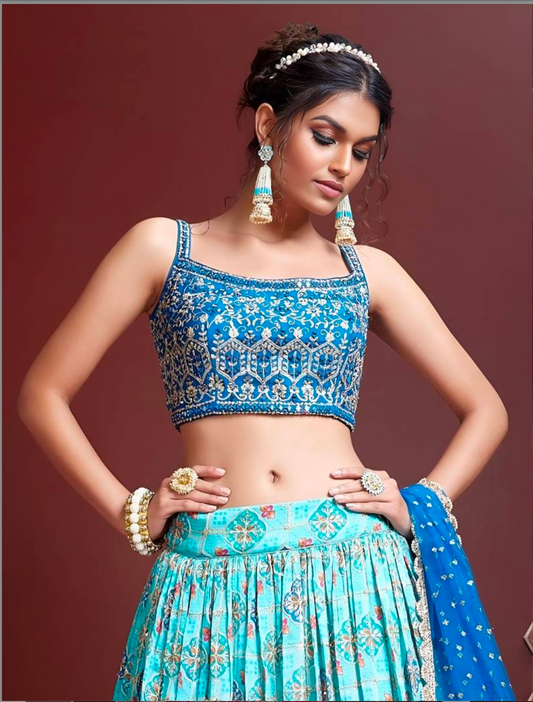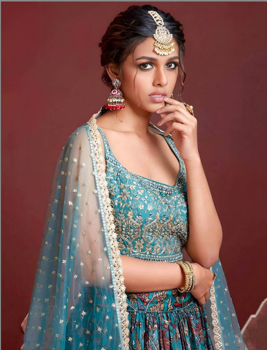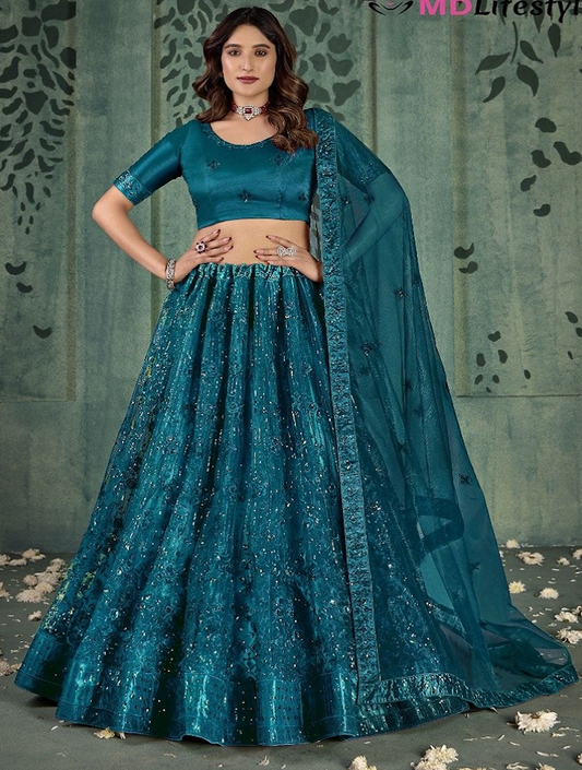 Price dropMatrut | Elegance Teal Blue Lehenga Set