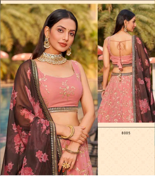 Price dropMatrut | Golden Palm Pink-Brown Lehenga