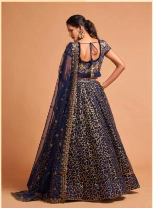 Price dropMatrut | Golden Palm Navy Blue Lehenga