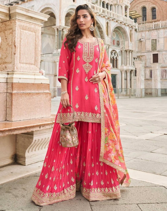 Price dropMatrut | Amara Hot Pink Sharara Suit