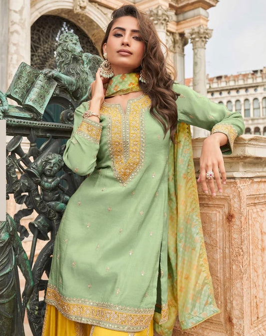 Price dropMatrut | Taj Mint Green Sharara Suit
