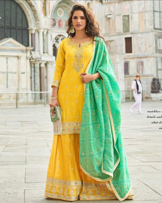 Price dropMatrut | Mariya Yellow Palazzo Suit