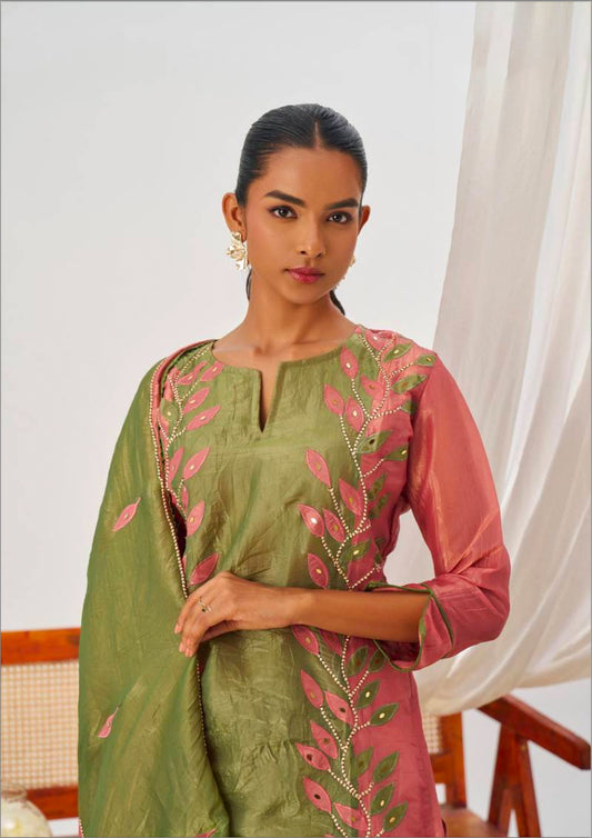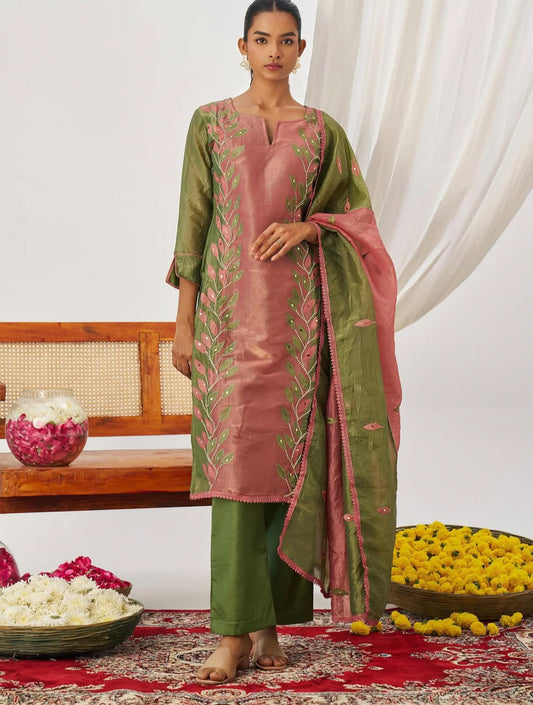 Price dropMatrut | Phool Green-Pink Straight Suit