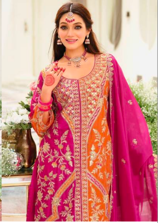 Out of stockMatrut | Vihara Pink-Orange Straight Suit