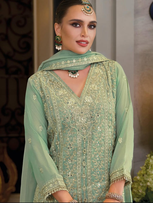 Out of stockMatrut | Mumtaz Mint Green Palazzo Suit