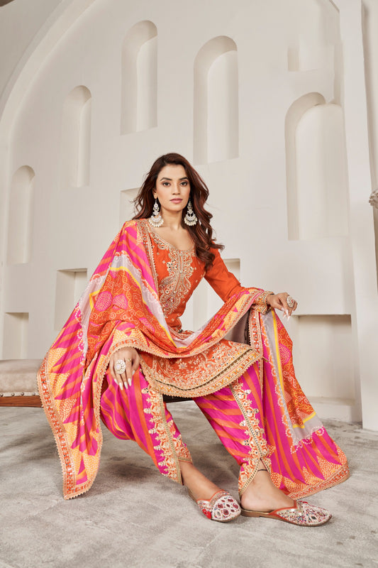 Price dropMatrut | Phoolzari Orange Dhoti Suit