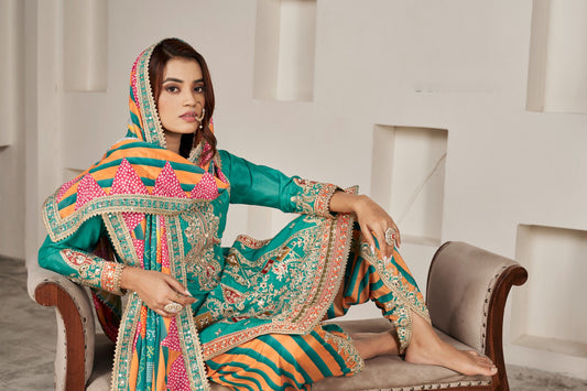 Price dropMatrut | Phoolzari Firozi Dhoti Suit