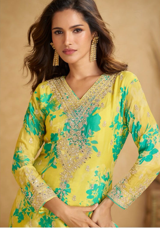 Price dropMatrut | Sofiya Yellow-Firozi Palazzo Suit