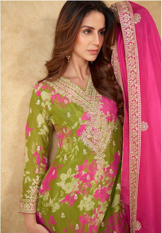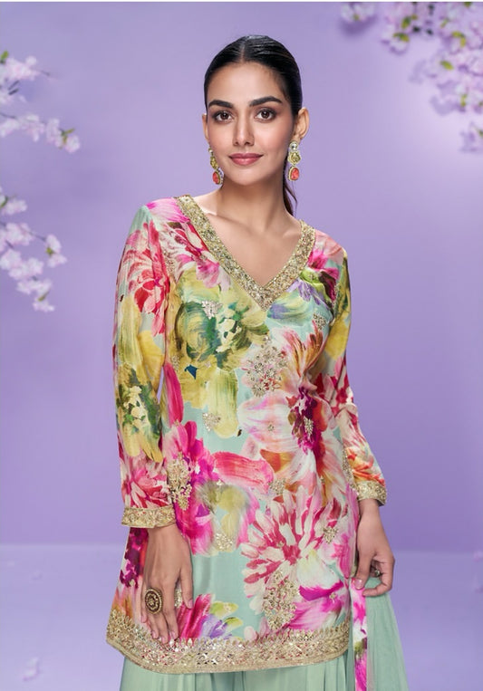Price dropMatrut | Sofiya Green-Pink Palazzo Suit