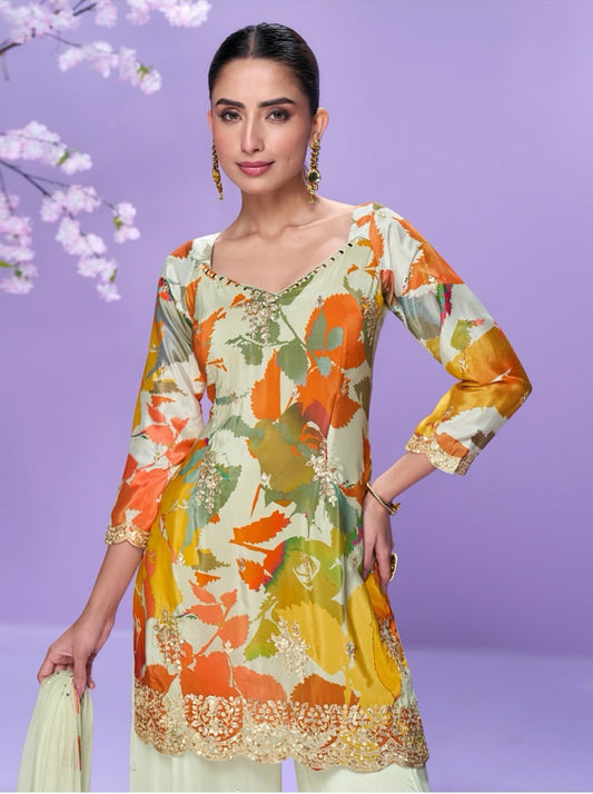 Price dropMatrut | Rashmika Orange Sharara Suit