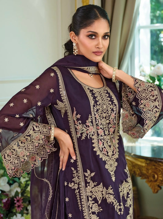 Price dropMatrut | Dastur Dark Purple Straight Suit