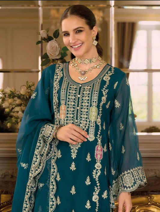 Price dropMatrut | Dastur Teal Blue Straight Suit