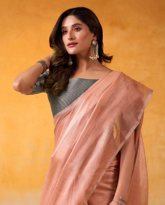 Matrut | Anvika Peach-Grey Saree