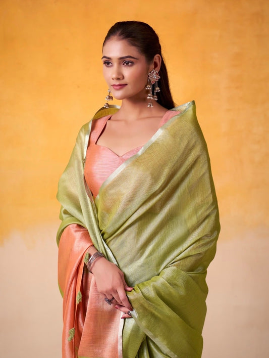 Matrut | Anvika Green-Peach Saree