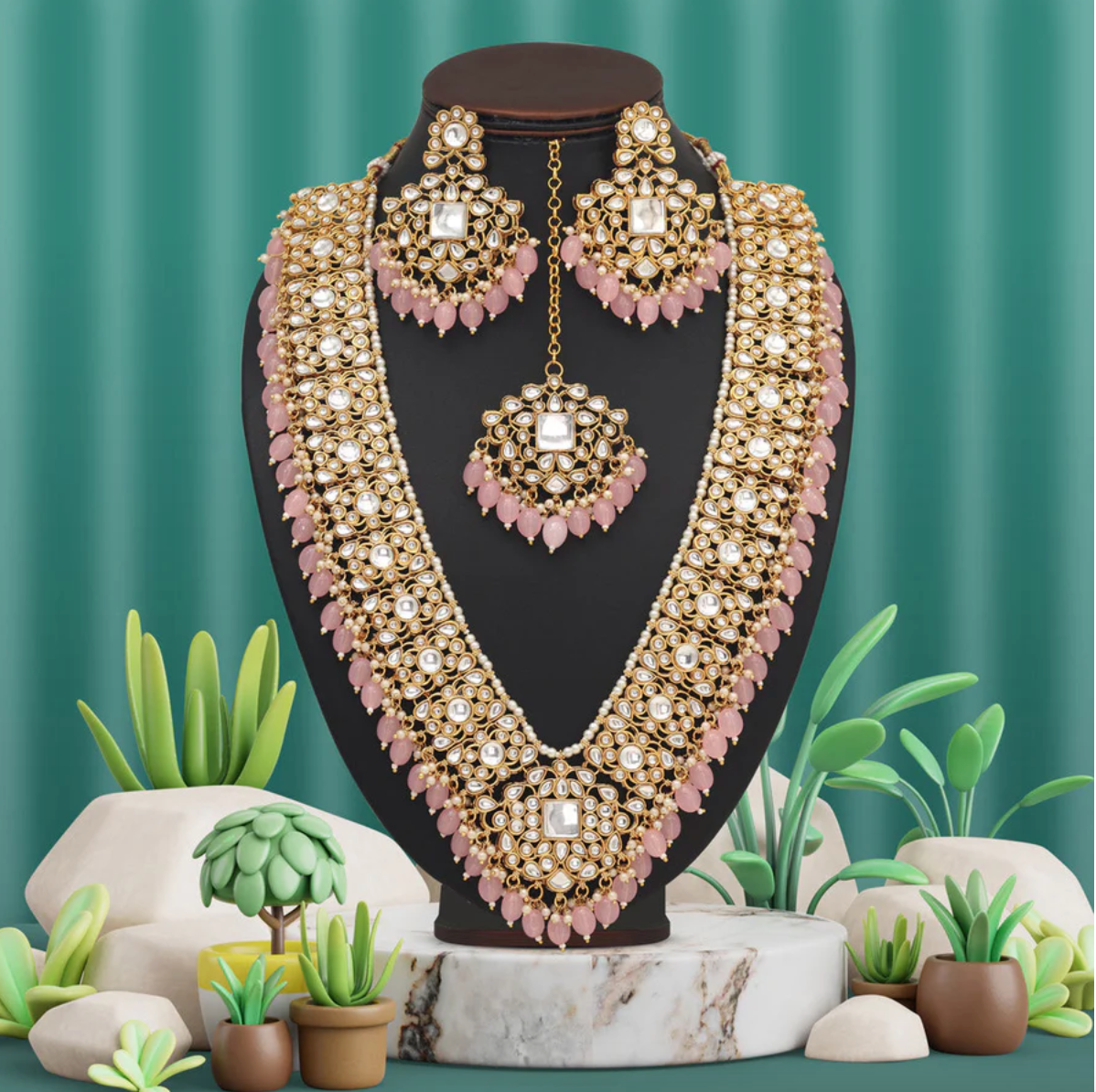 - Size: Adjustable Rope | Necklace Length: 52.00 CM x Width: 4.50 CM.Earring Length: 8.00 CM x Width: 5.00 CM.Maang Tikka Length: 15.00 CM x Width: 5.00 CM