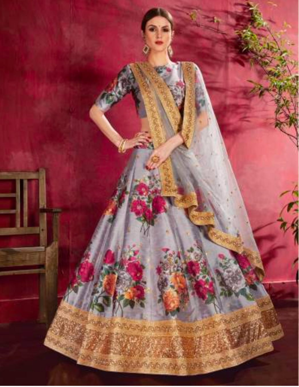 Matrut | Carnations Grey Multicolor Lehenga