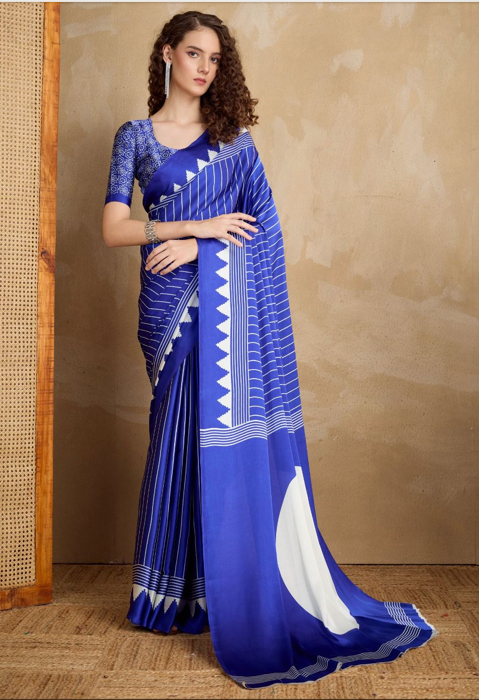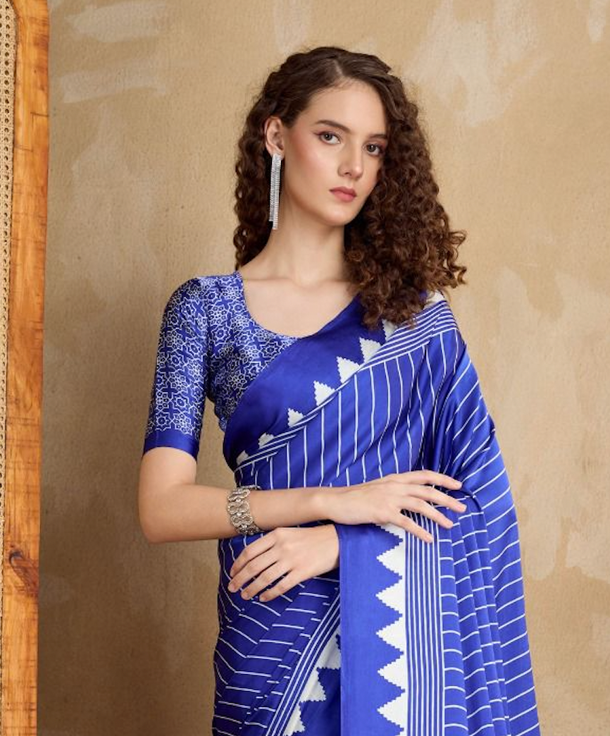 Details: Saree : Modal Satin Ajrakh Print Saree | Blouse : Modal Satin Ajrakh Print Saree