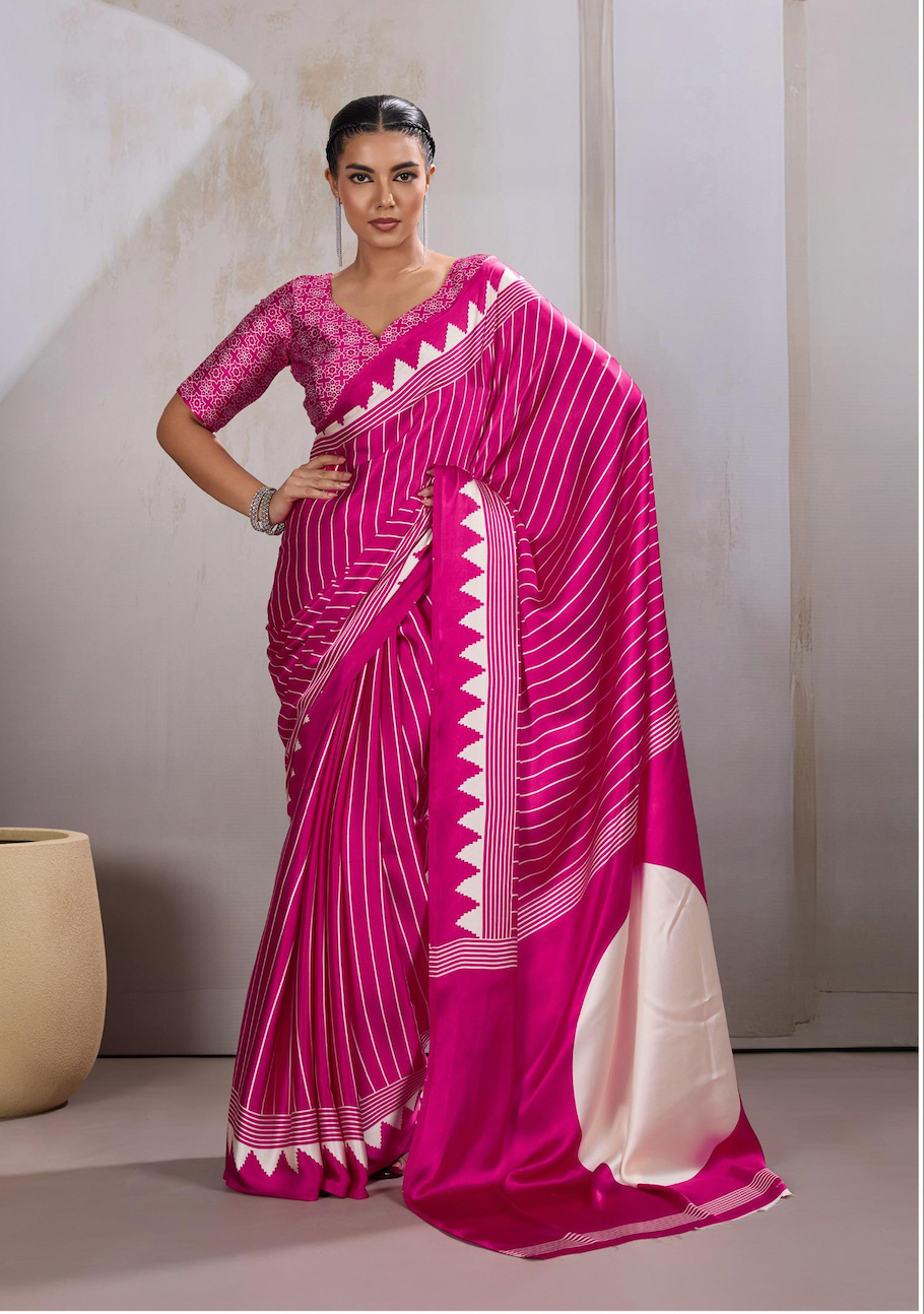 Details: Saree : Modal Satin Ajrakh Print Saree | Blouse : Modal Satin Ajrakh Print Saree