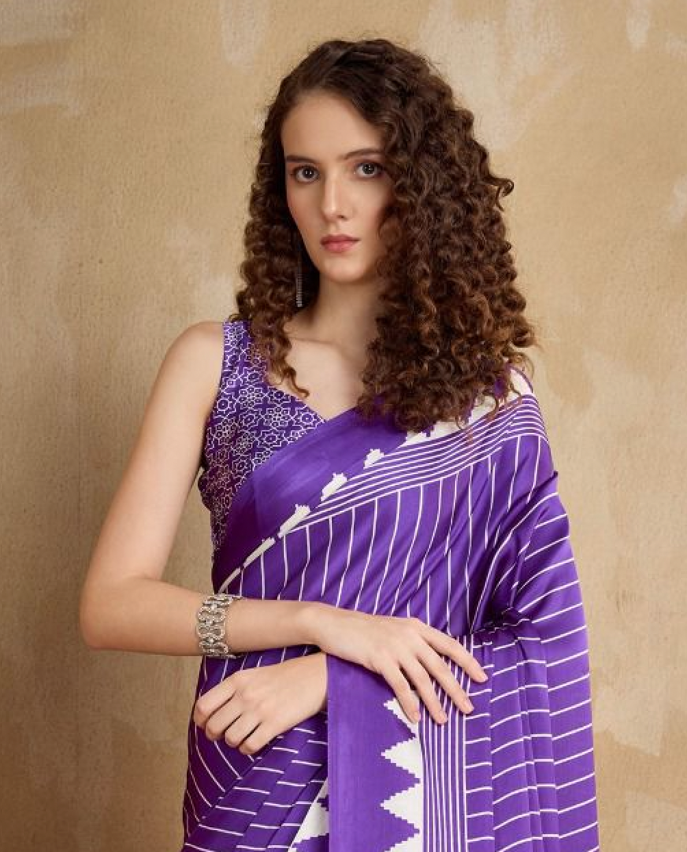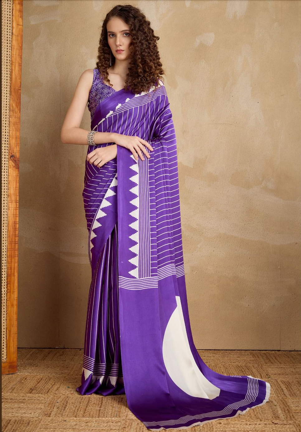 Details: Saree : Modal Satin Ajrakh Print Saree | Blouse : Modal Satin Ajrakh Print Saree