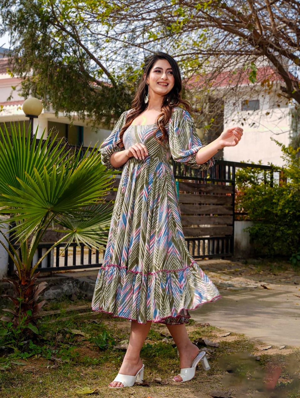 Matrut | Clora Bee Mehendi Green Maxi Dress