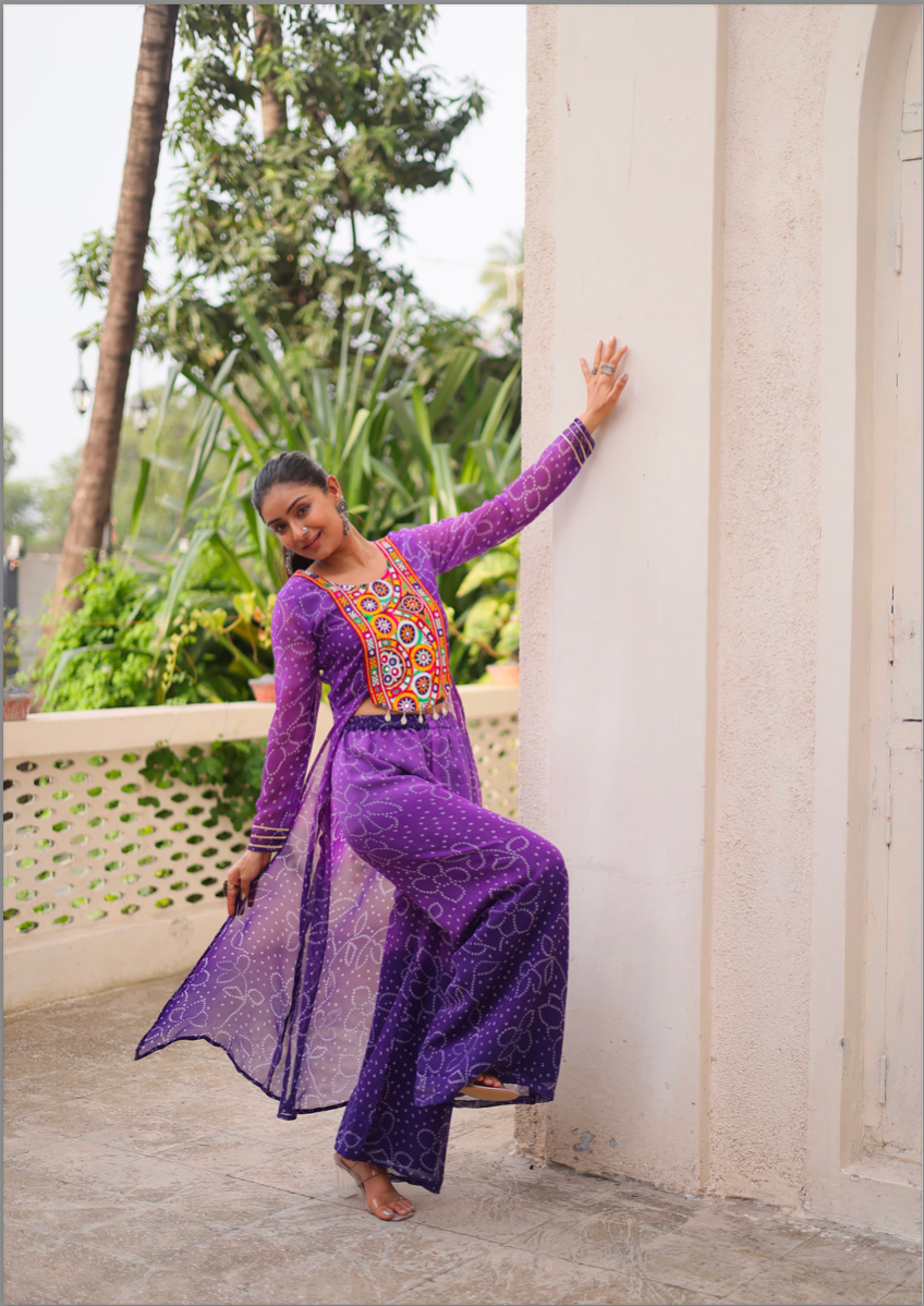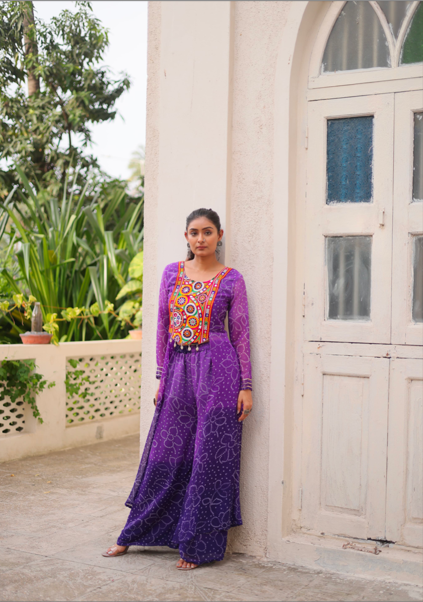 - Details: Bandhani print work with kutchi gamthi patch work work | Length :- 52 inch | Lining :- cotton (half inner top only ) | Sleeves :- full sleeves | Neck type :- fancy round neck | bottom fabric :- bandhani print work | Length :- 40 inch | waist :- elastic waist