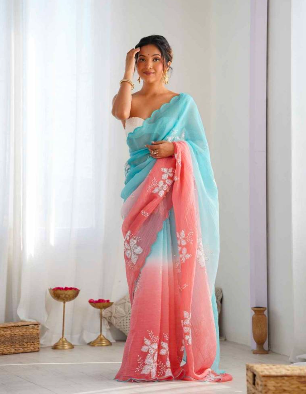 Fabric: Saree: Crunchy Organza | Blouse: Satin Silk