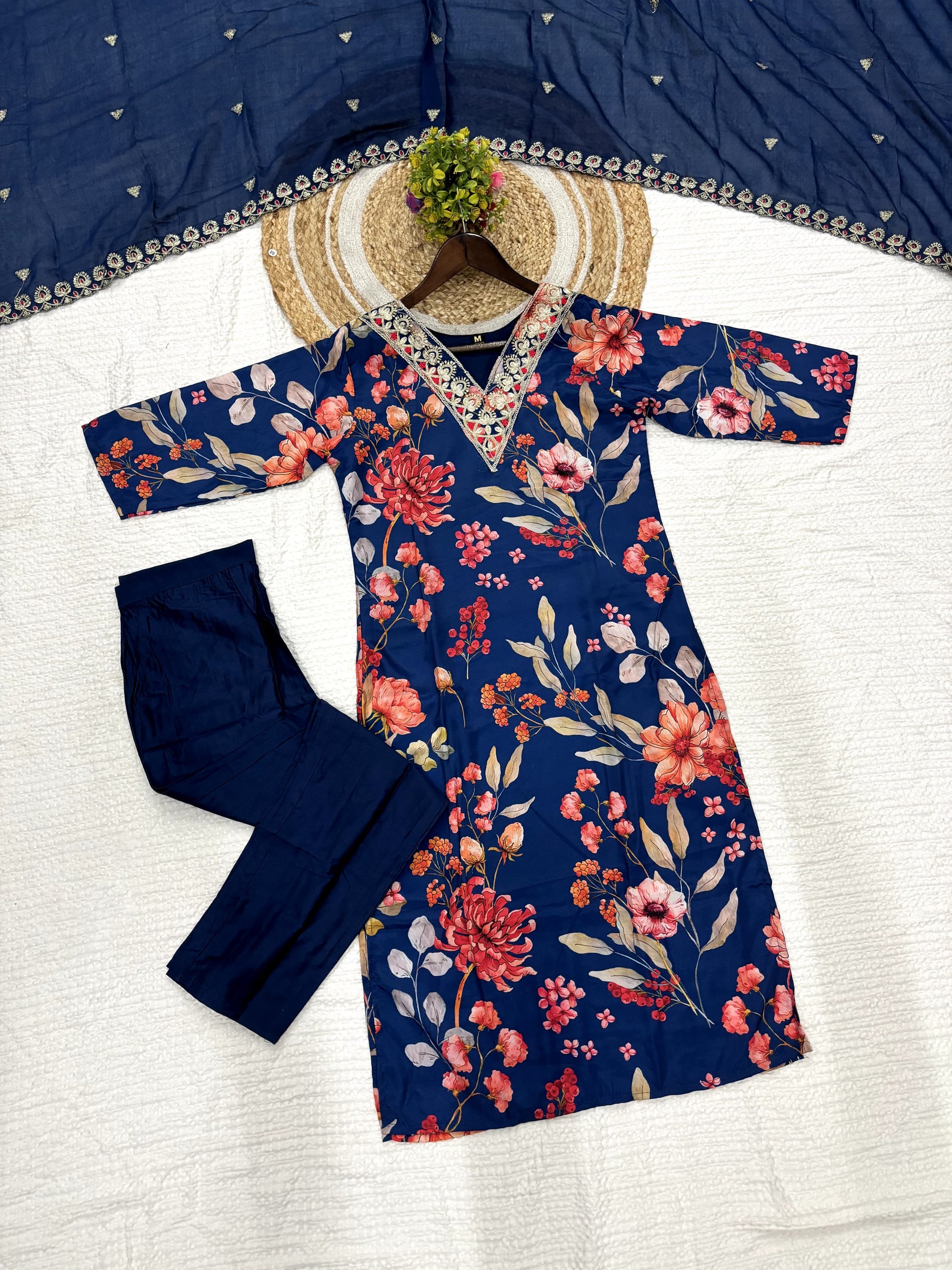 Matrut | Flora Bliss Navy Straight Suit
