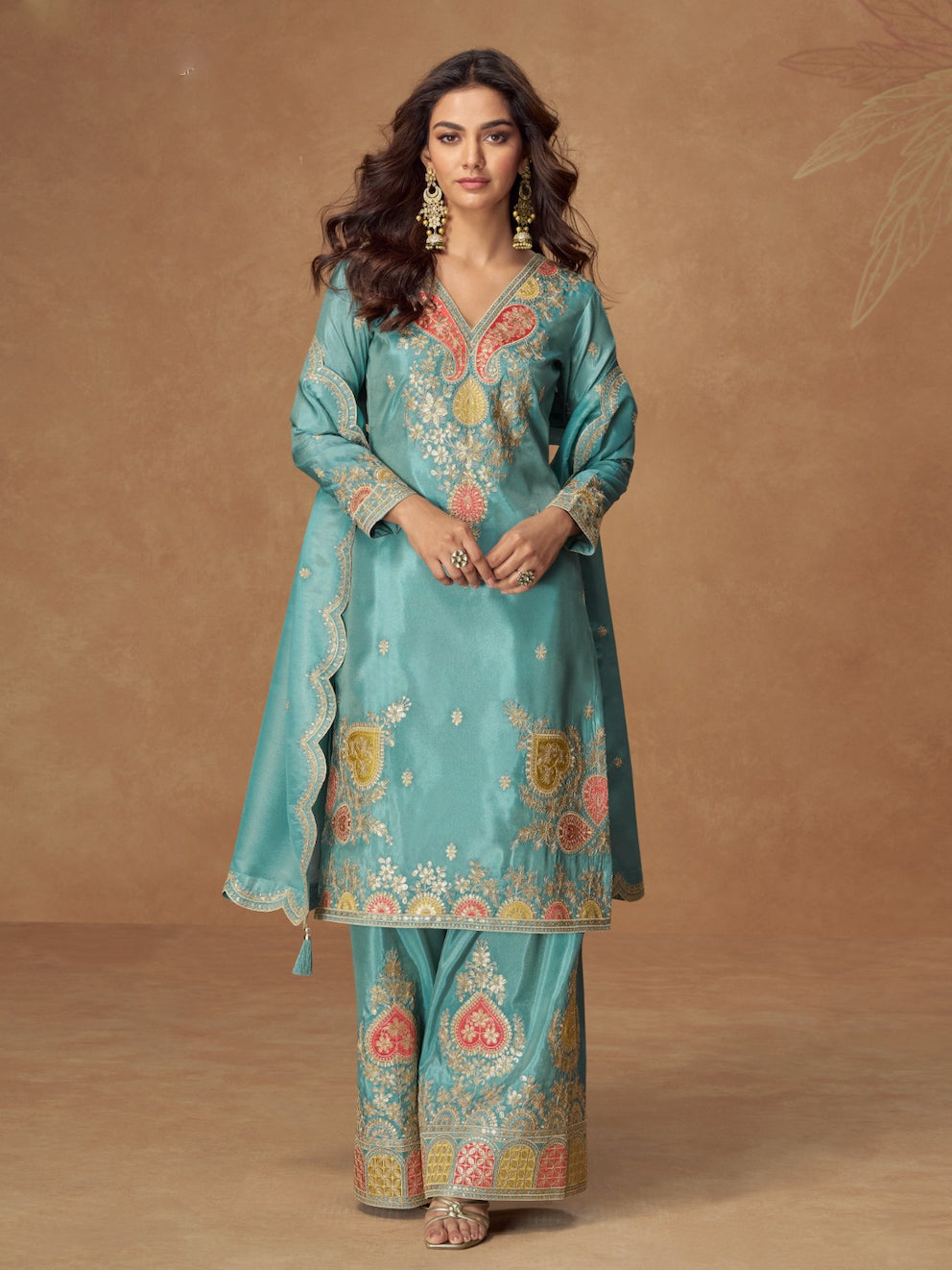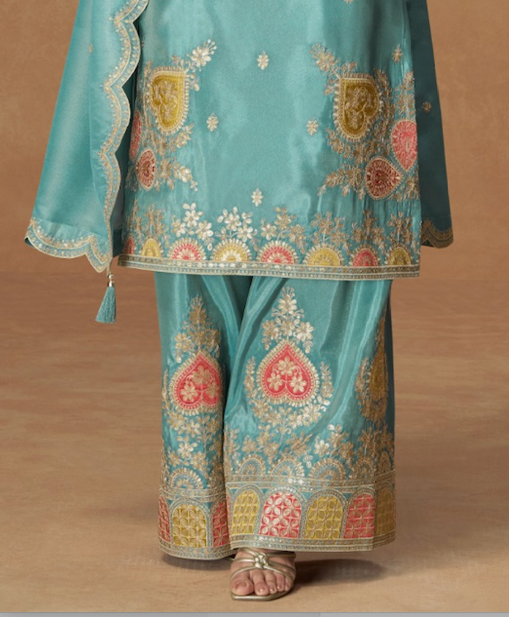 Pattern: Top: Heavy Embroidery & Patch Work on shimmer silk | Bottom: Embroidery | Dupatta: Embroidery