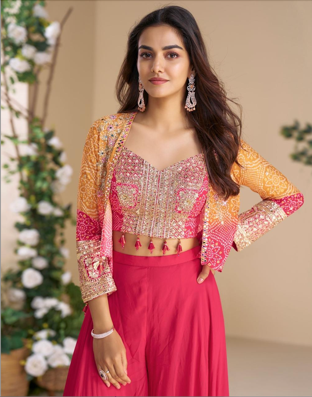 Pattern: Hand and beeds work embroidered blouse with plazzo and dupatta | (sleeves attached)
