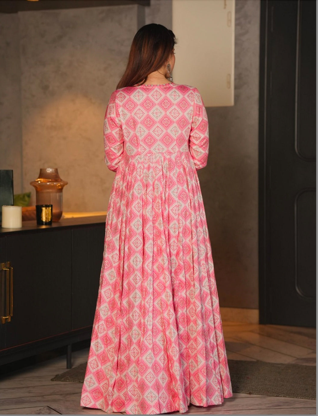 Georgette with Heavy Digital Printed | Full Inner In All Full Flair | Length: Long (According To Size Chart) | Stitching Type: Standard Stitching With Beautiful Latkan