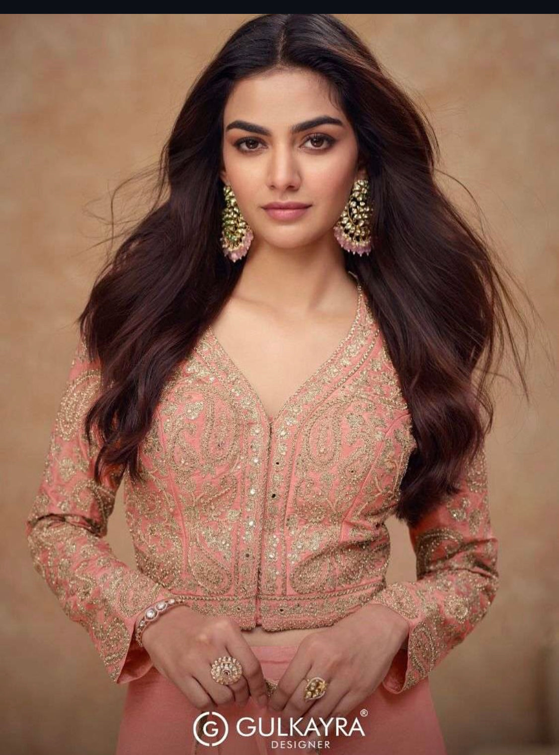 Pattern: Blouse/Palazzo/Shrug :- Premium Real Chinon Silk / Viscose Jacquard Silk ( Trendy Festive Look Front And Back Embroidered Shrug With Embroidered Blouse On Hand Embellished Mirror Work With Stylist Palazzo