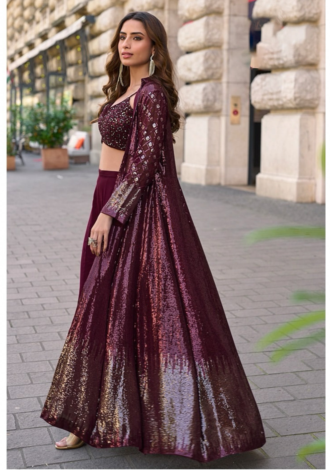 Pattern: Blouse/Palazzo/Jacket :- Real Premium Georgette ( Full Heavy Look Front And Back Embroidered Floor Length Jacket With Embroidered Blouse And Palazzo) |