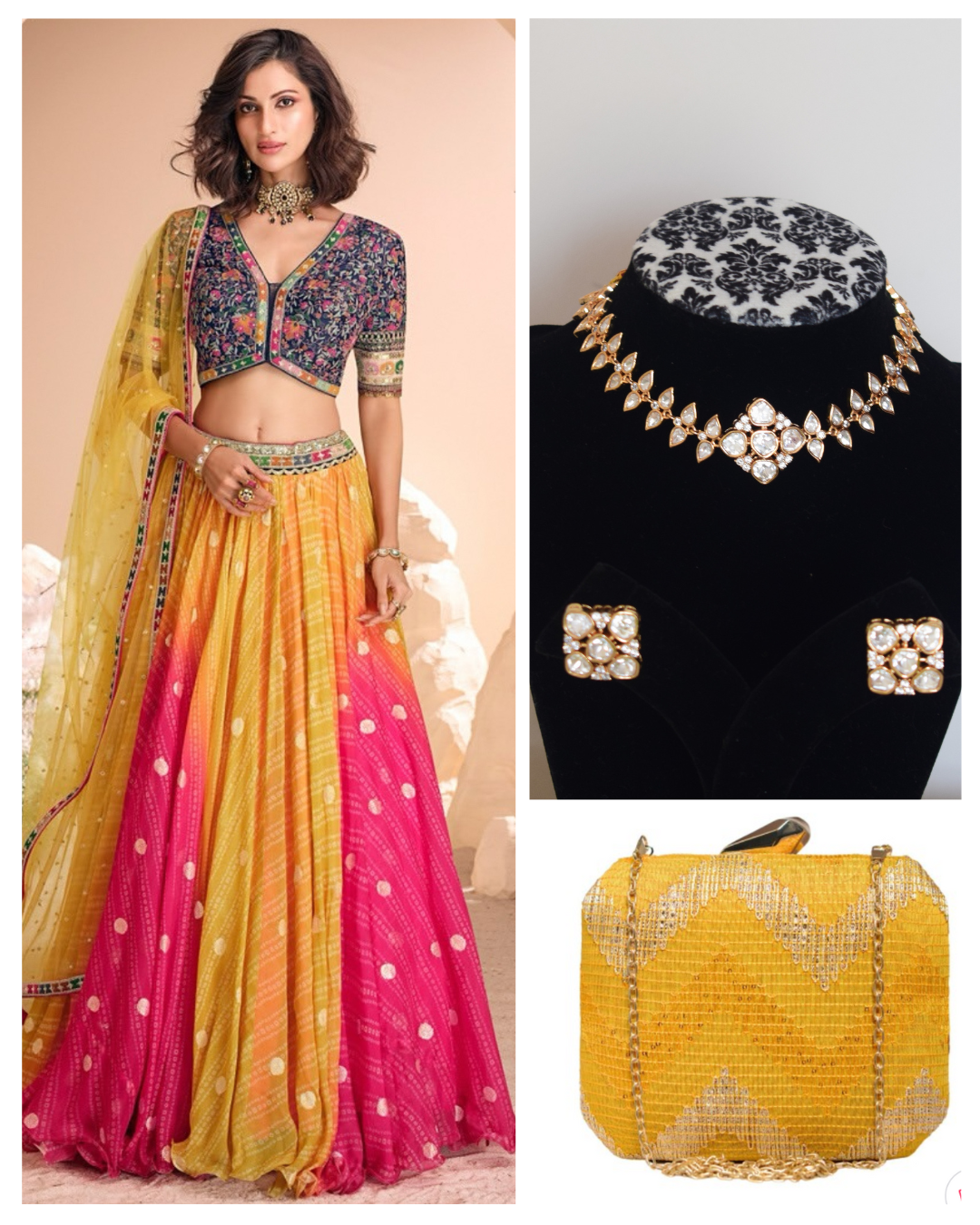 On rent - FULL SET | Hermitage Pink-Yellow Lehenga Set